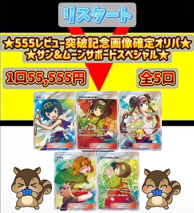 ❤️リスタート555レビュー突破記念画像確定オリパ❤️⭐️サン&ムーンサポートスペシャル⭐️