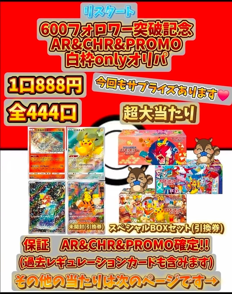 ㊗️600フォロワー突破記念㊗️✨AR&CHR&PROMO白枠onlyオリパ✨