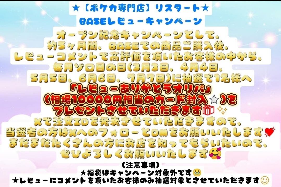 BASEにてポケカ専門店としてオープンさせていただきましたっ(๑✪∀✪ノノ゙✧パチパチ⭐️✨️