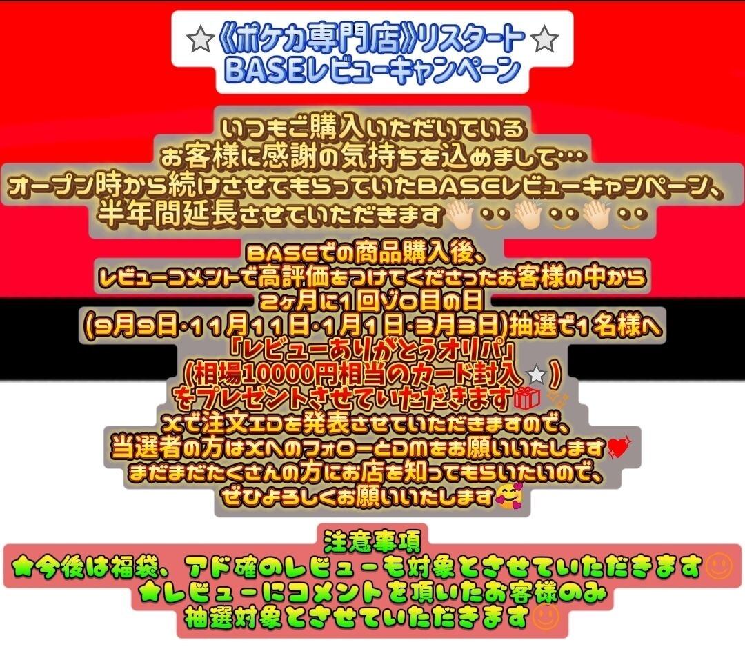 BASEにてポケカ専門店としてオープンさせていただきましたっ(๑✪∀✪ノノ゙✧パチパチ⭐️✨️